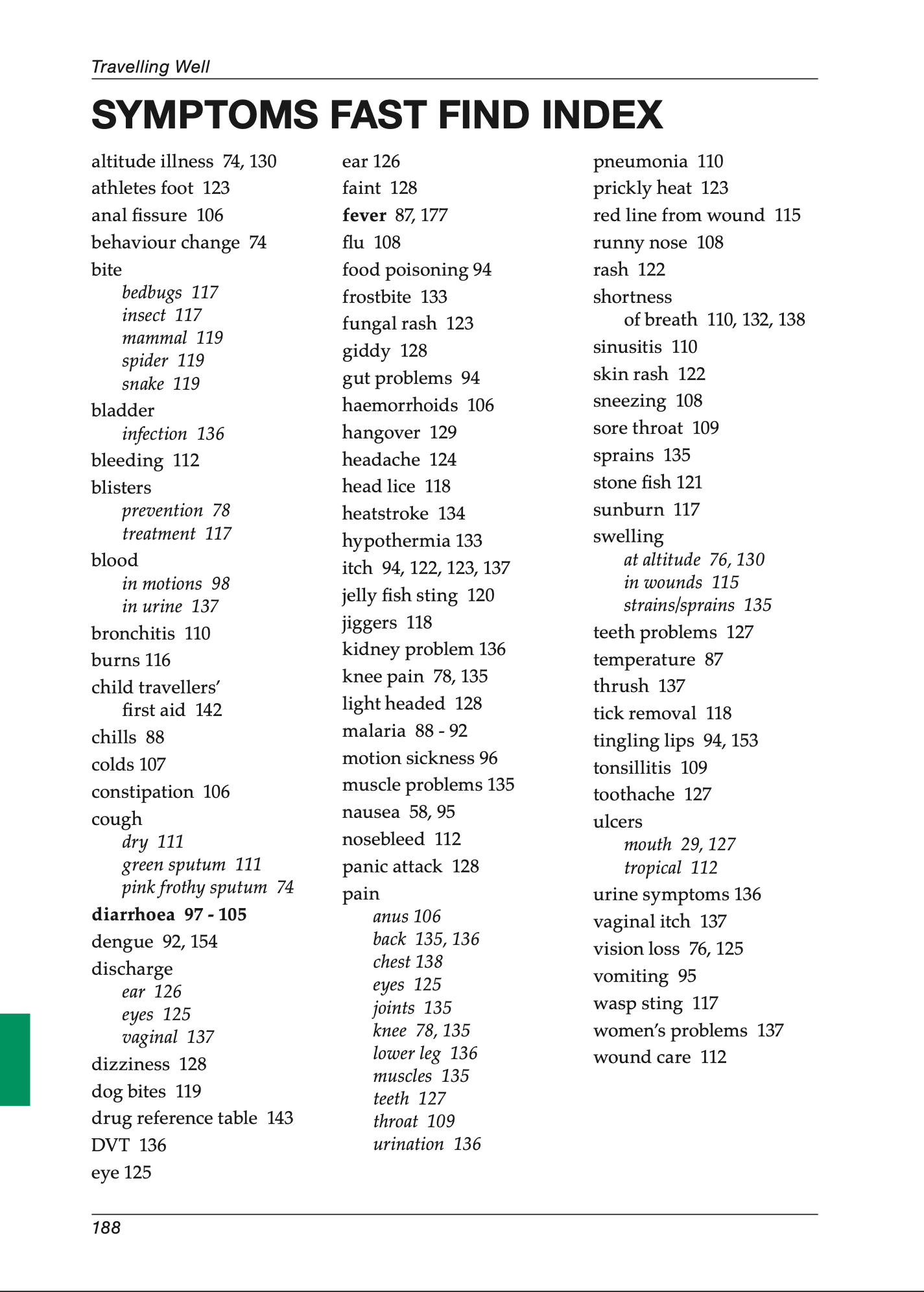 From altitude sickness to stomach bugs, insect bites to chest infections, the Fast-Find Index helps you identify and treat over 100 common travel health issues. Get instant, practical advice when you need it.